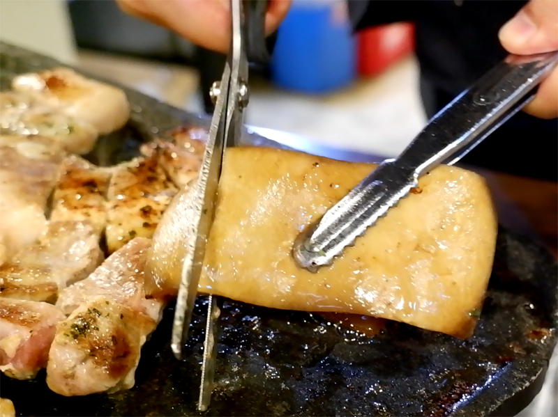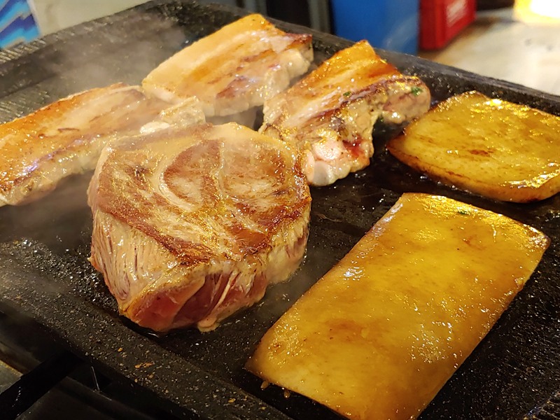 살코기가 많은 목살과 찐덕한 껍데기의 오묘한 조화가 느껴집니다.