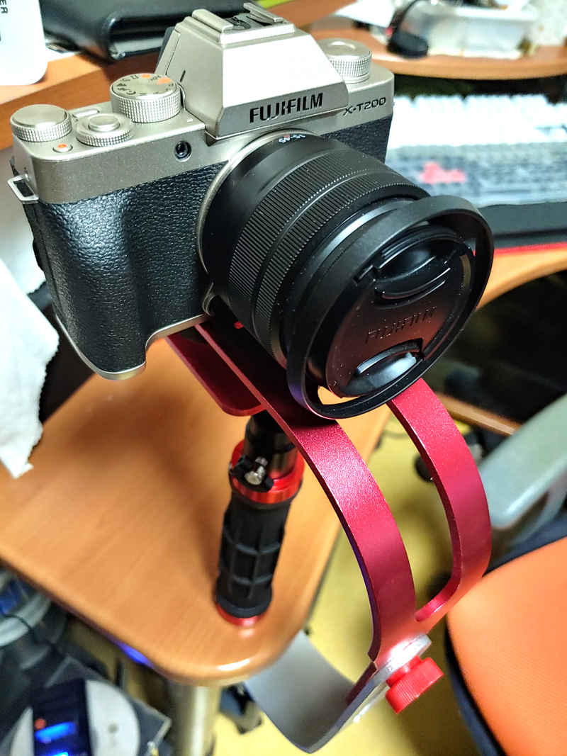 제 후지필름 X-T200을 걸어 수평을 유지한 채 책상에 세워보았습니다.
