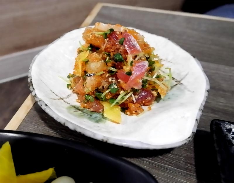 요놈은 참치를 깍둑썰기를 해서는 무싹과 참깨, 날치알 등과 버무린 것으로