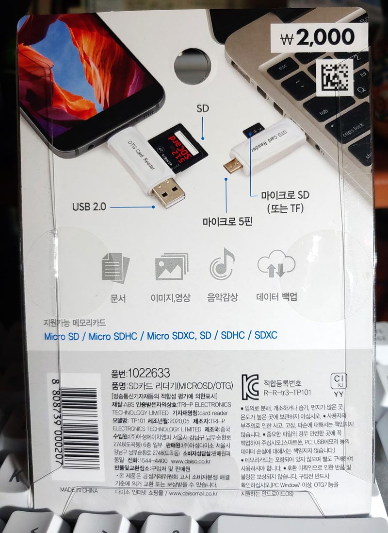 다이소에서 파는 2천원짜리 SD카드리더기라고 해야할 것입니다.