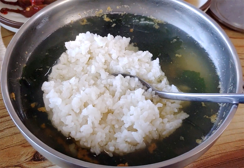 저는 말아먹는 것을 좋아해서 처음부터 이리 밥을 말아버립니다.