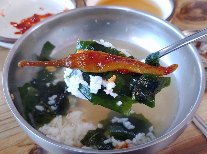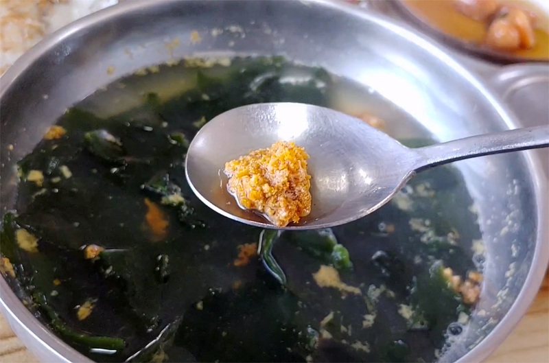해서 나온 것이 이렇게 생긴 성게미역국입니다요.