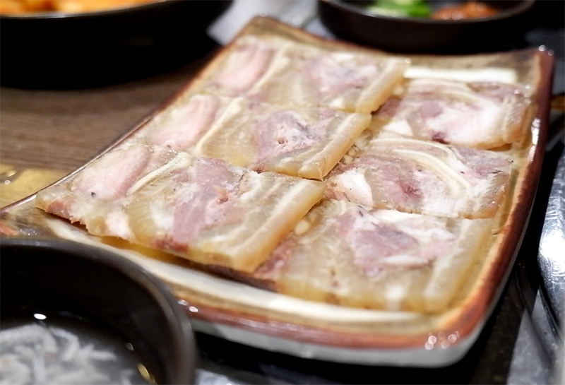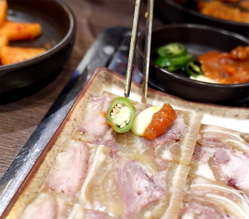 고소한 머릿고기에 마늘이랑 청양고추에 쌈잘을 발라버려!
