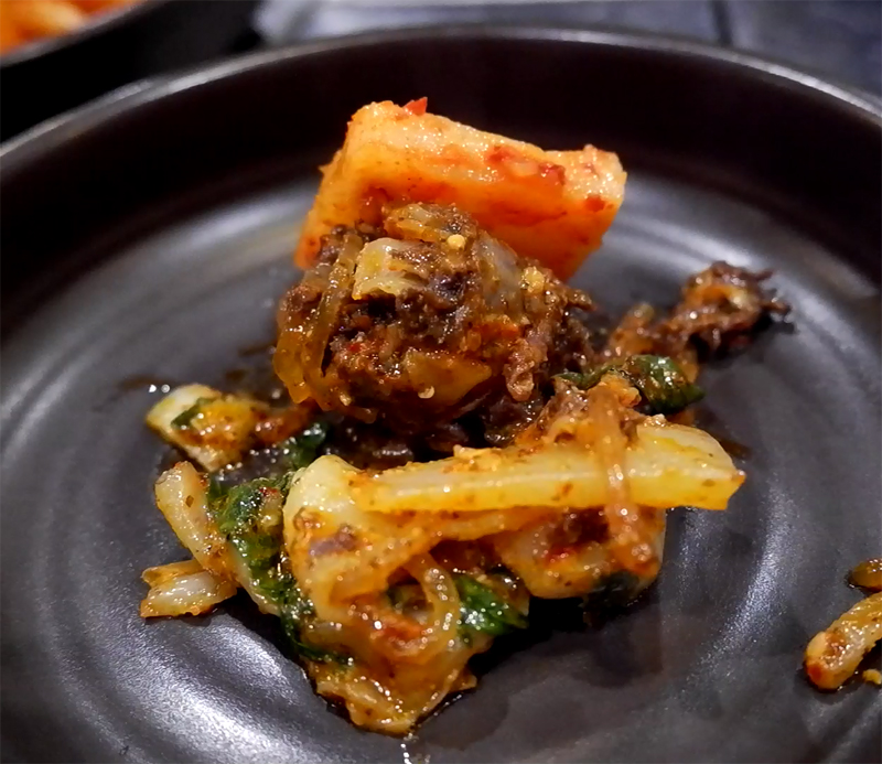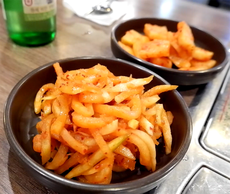 좀더 다른 맛을 추구한다면 사진처럼 무생채나 깍두기를 올려 먹는 방법도 좋습니다.