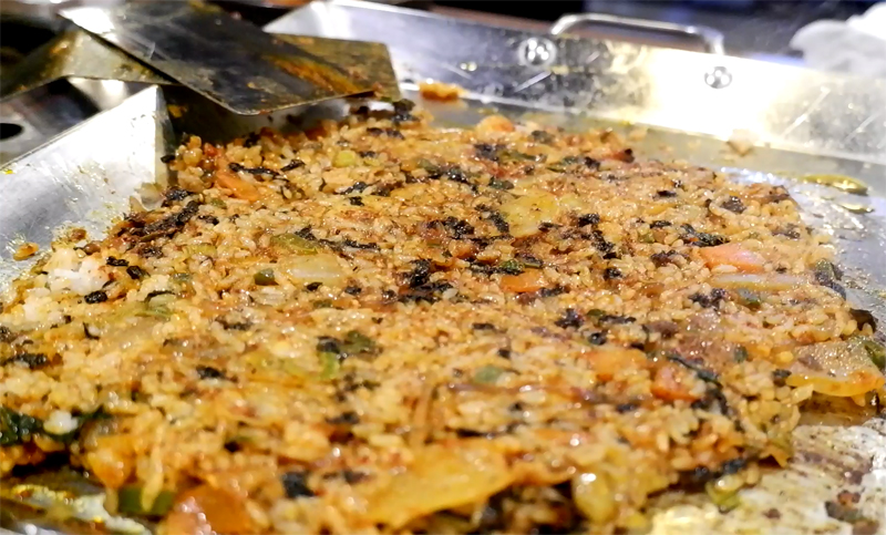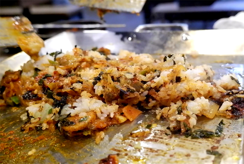 밥을 볶으니 비로소 철판요리가 되는 기분입니다.