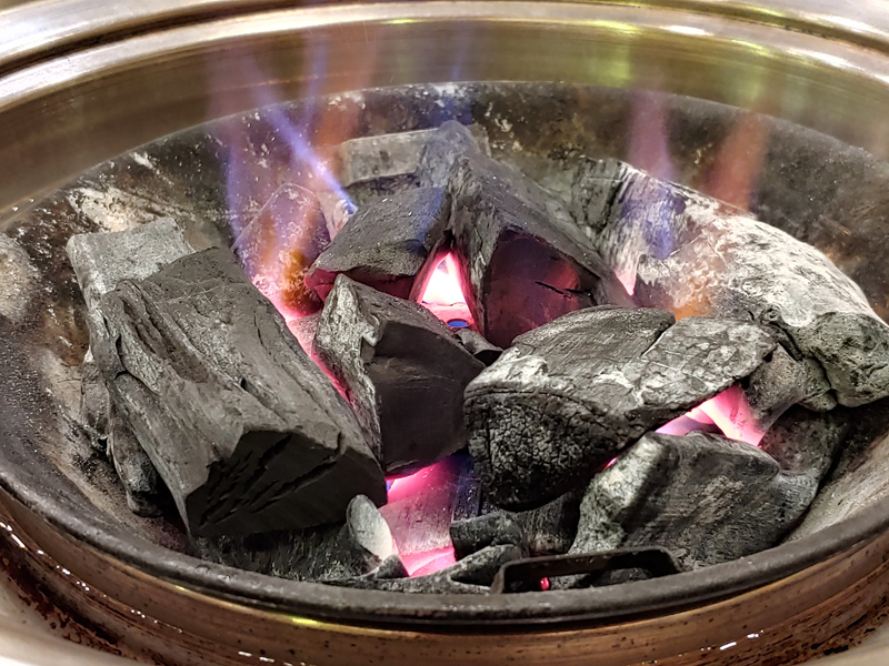 가스불을 끄면 그저 부드러운 강도의 열기가 나옵니다.
