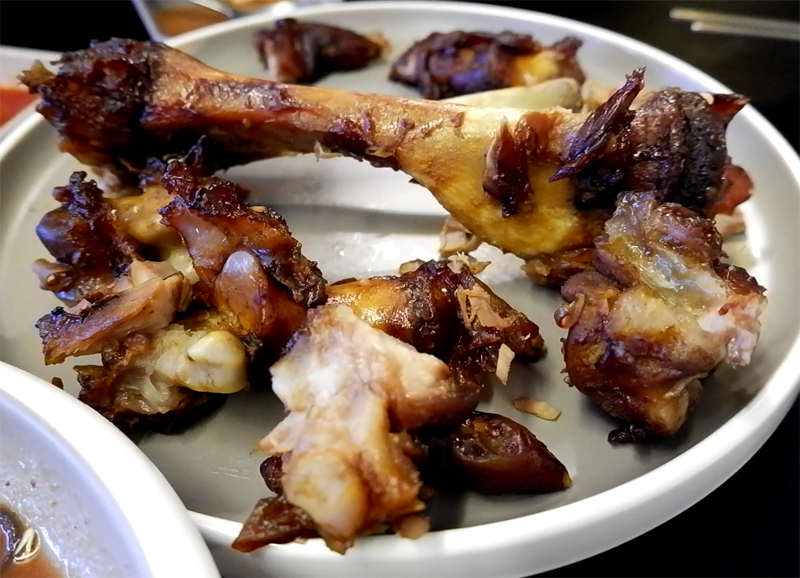 어찌어찌 아자씨 둘이서 족발과 보쌈 고기를 한 접시 씩 다 먹어버리고 뼈만 남았네요.