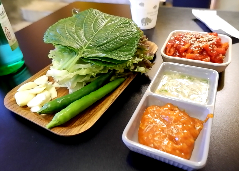 고기가 도착하기 전 먼저 생채소와 소스류...