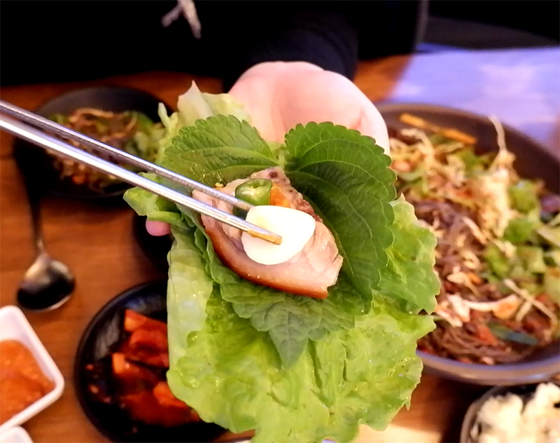 한쌈 싸먹는 장면을 찍으려고,