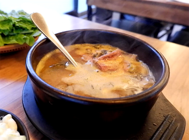 진한 된장 국물에 등뼈 하나가 쏙 들어가 있네요.