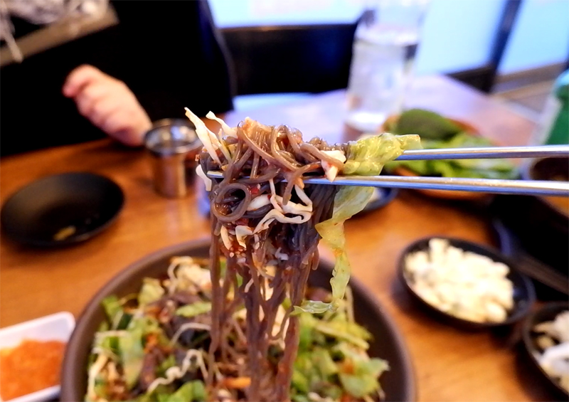달달하고 쫄깃한 면발에 아삭한 채소가 같이 씹혀