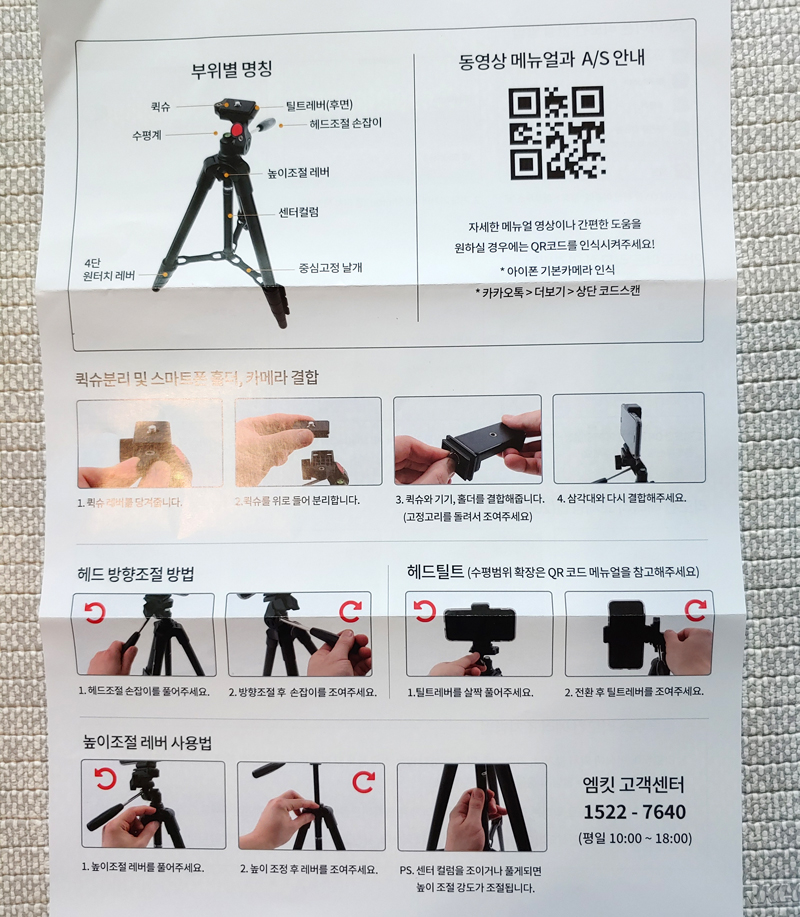 바꾸어 사용하면 되어서 일부러 작은 사이즈의 삼각대를 선택하였습니다.