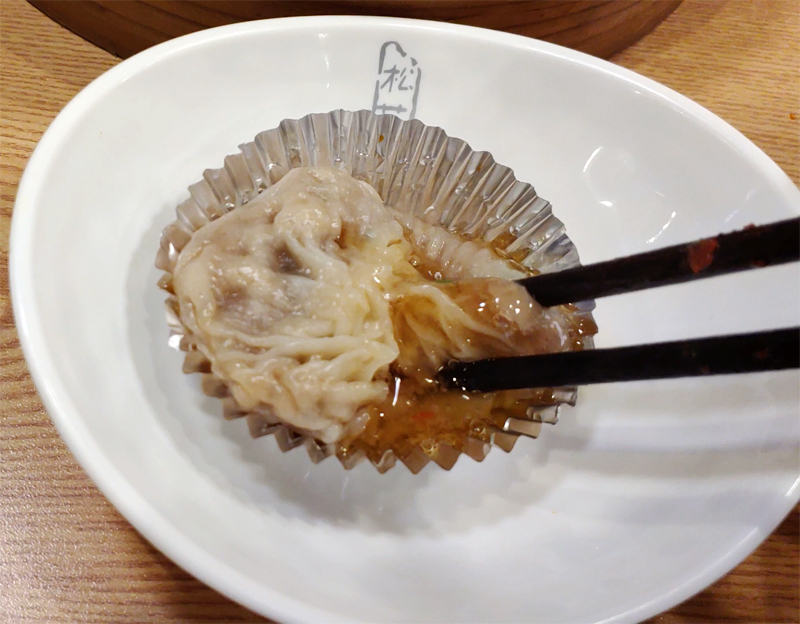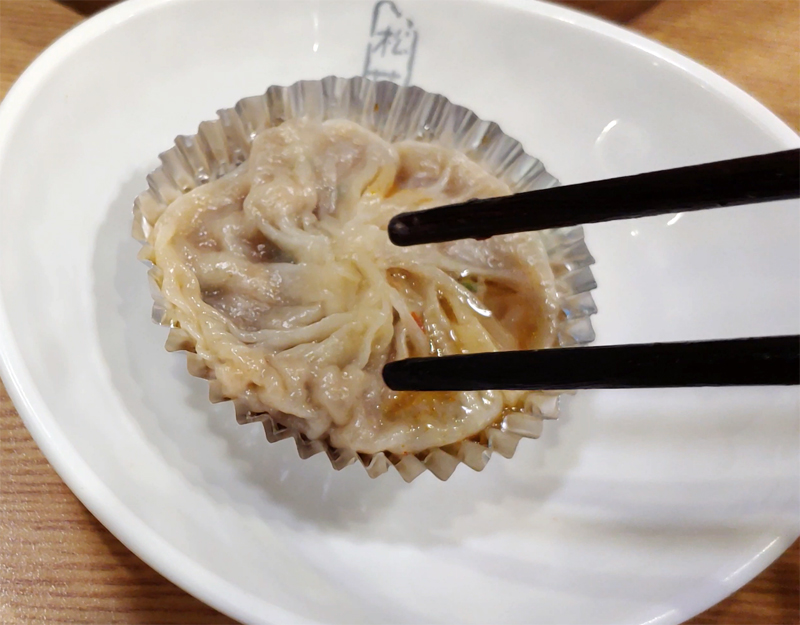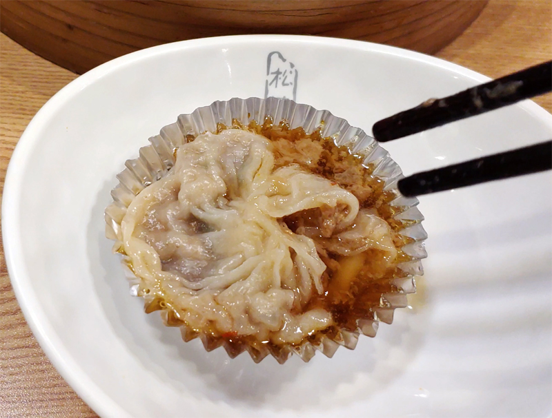 딤섬 속의 육즙이 터져 흘러내리고 있네요.