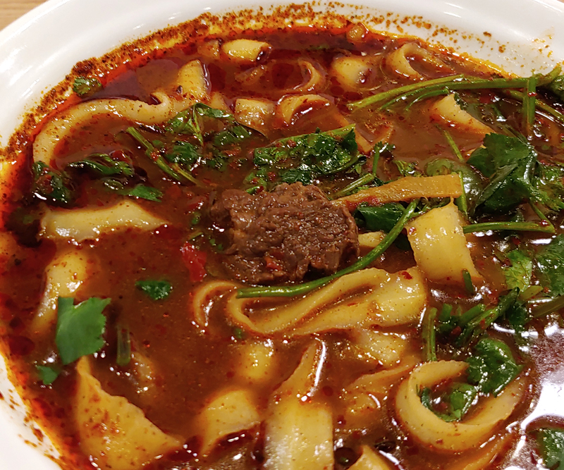 도삭면은 숙성된 밀가루 반죽을 넓은 칼날로 썩썩 베어내어