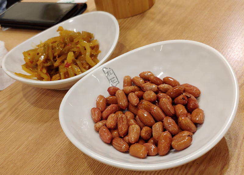 기본 반찬은 땅콩볶음과 짜사이가 나옵니다.