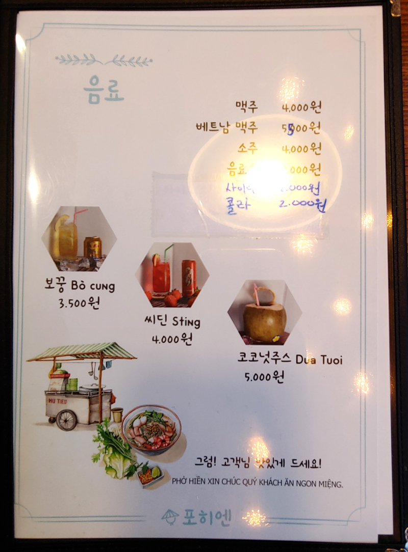 뜨끈한 베트남쌀국수에 소주 한잔도 좋겠습니다.