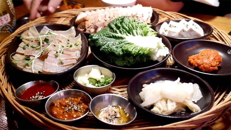 수육에 홍어에 묵은지에 칼칼함을 추가!