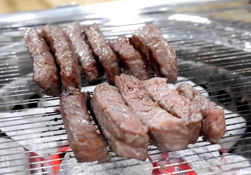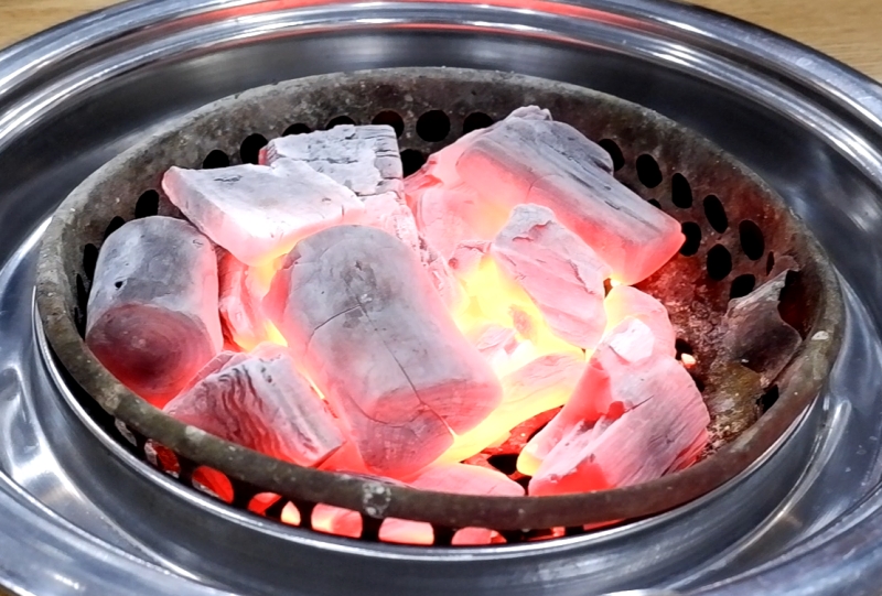 숯불의 열이 그대로 고기에 닿겠습니다.