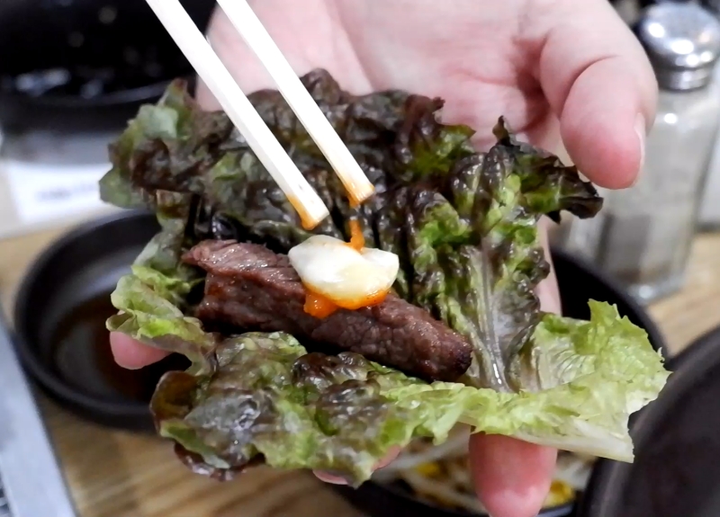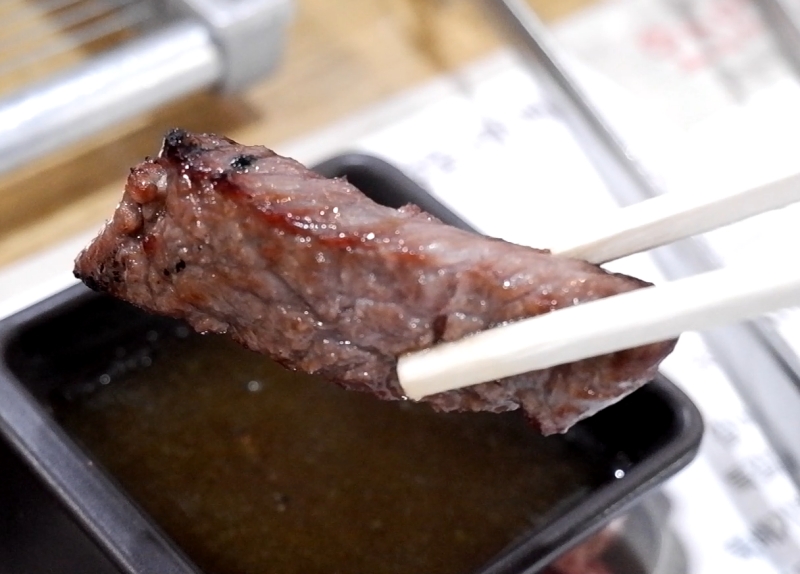 이가 고기 사이로 들어가면 육즙이 줄줄 흐릅니다.