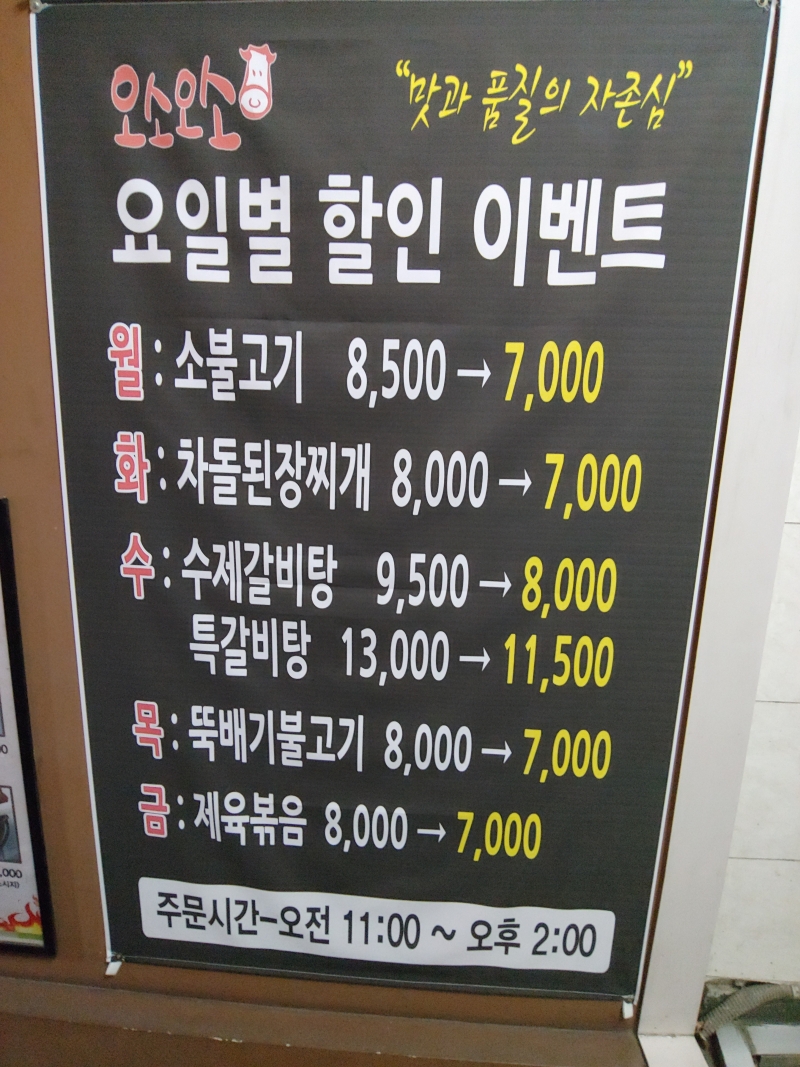 요일별로 점심메뉴를 할인해서 팔고 있으니