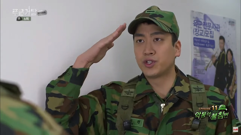 사진은 코믹드라마 푸른거탑에서 외국 출신 신병으로 연기한 모습입니다.