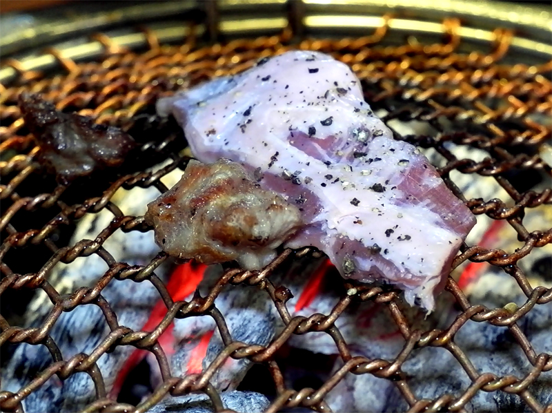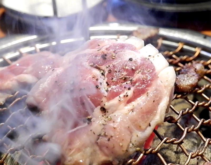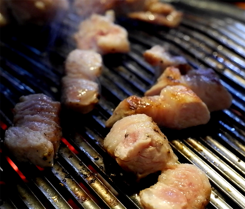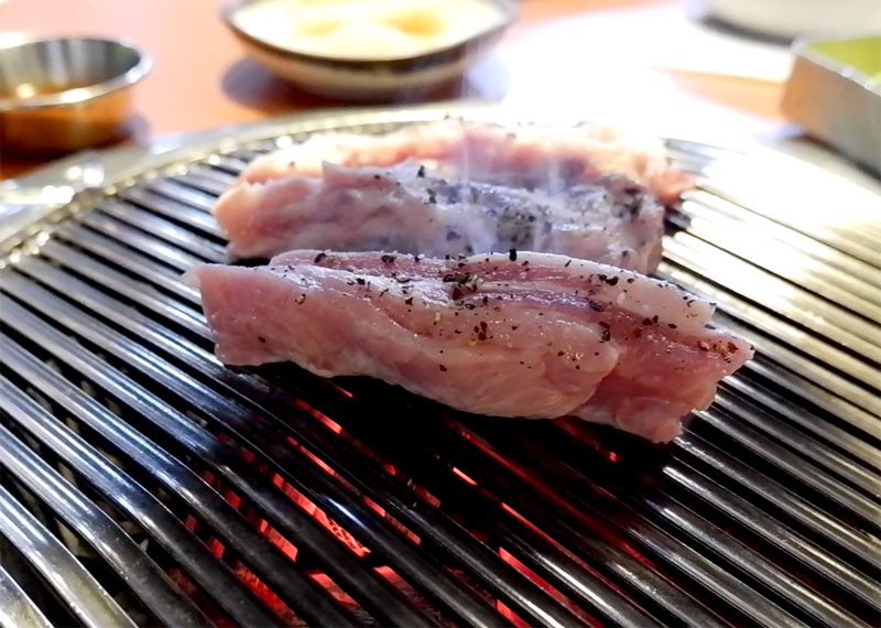 소금의 짭잘함과 후추의 향과 숯의 화기 만들어낸 돼지고기의 궁극의 맛!
