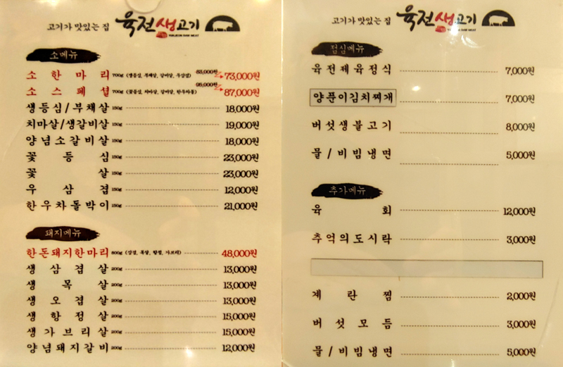 해서 메뉴가 소와 돼지 고기 메뉴가 주이고