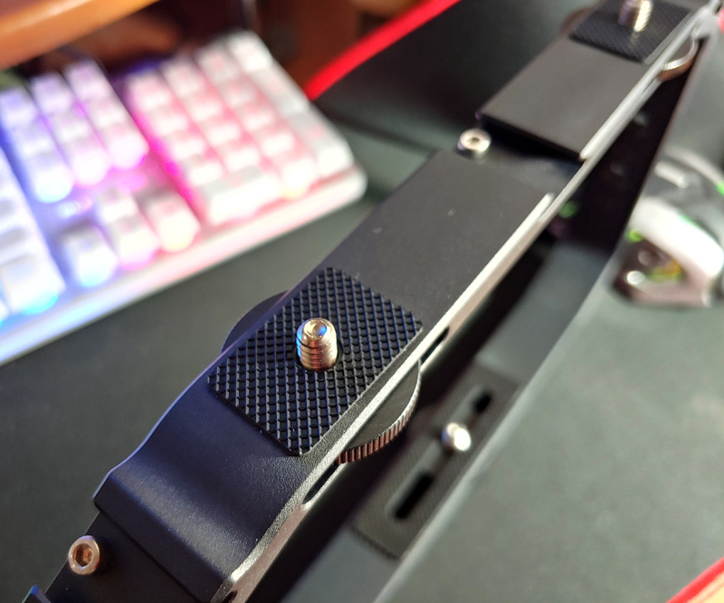 하부에는 스마트폰이나 액션캠, 미러리스 등의 카메라를 거치할 수 있는 스크류 볼트가 있습니다.