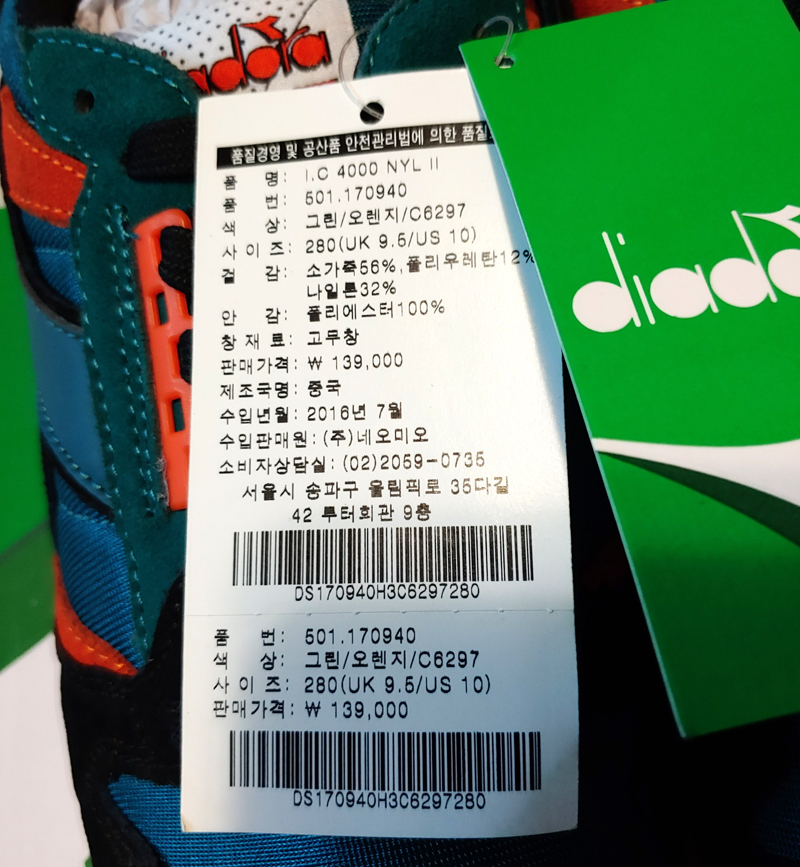 모델명은 Diadora I.C 4000 NYL II 그린/오렌지로