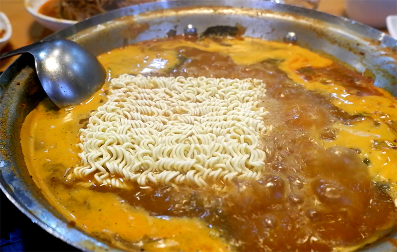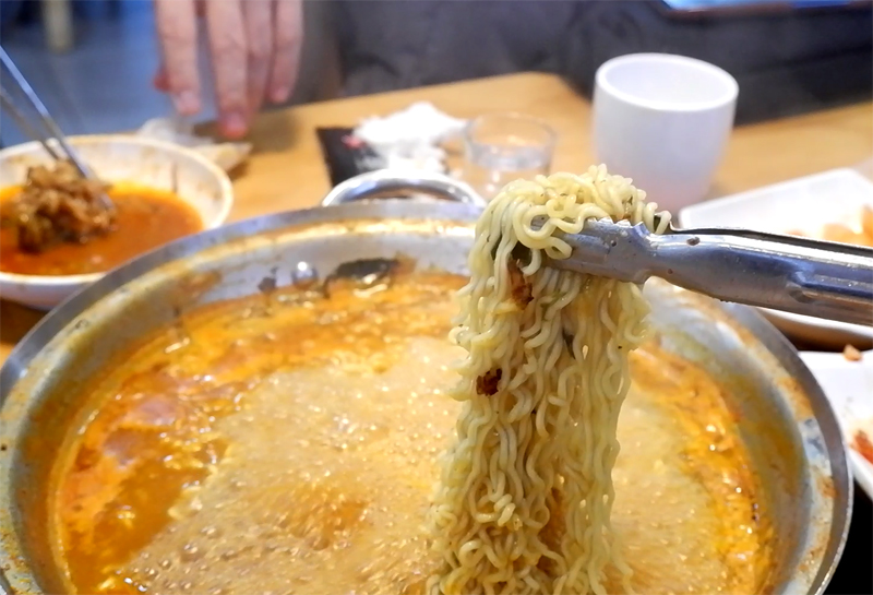 진득한 국물에 익혀먹는 라면은 집에서 끓여먹는 그냥 라면과는 또다른 맛을 안겨주지요.