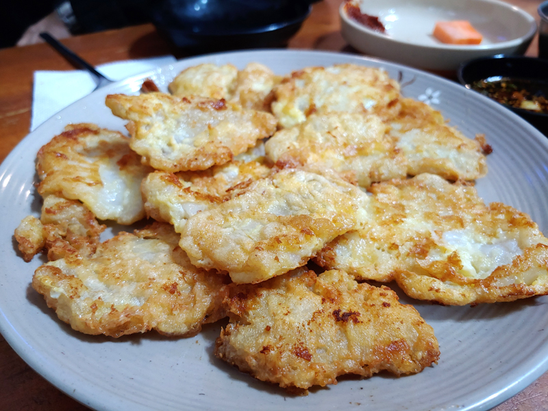 그리하여 여차저차로 주문한 안주가 동태전입니다.