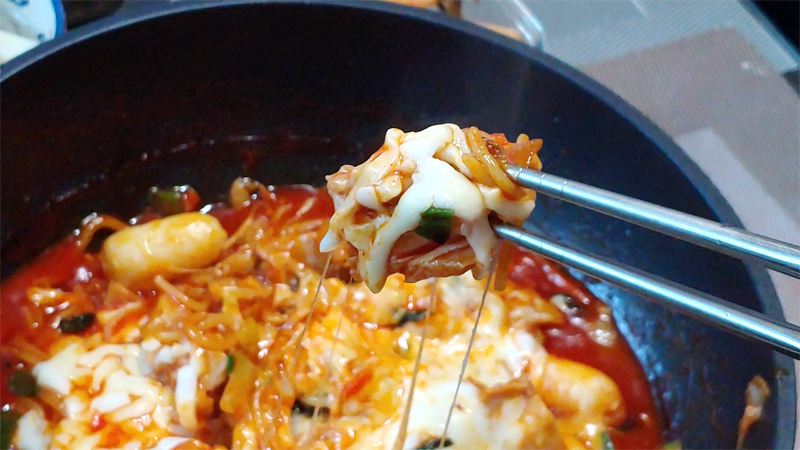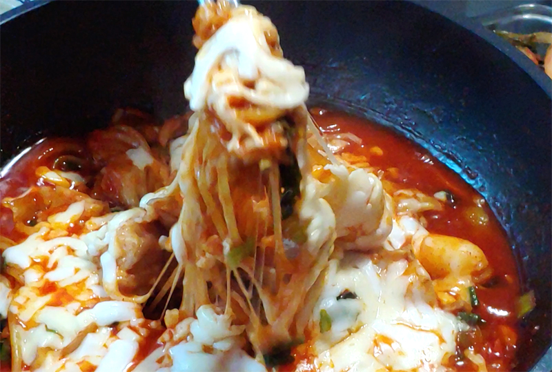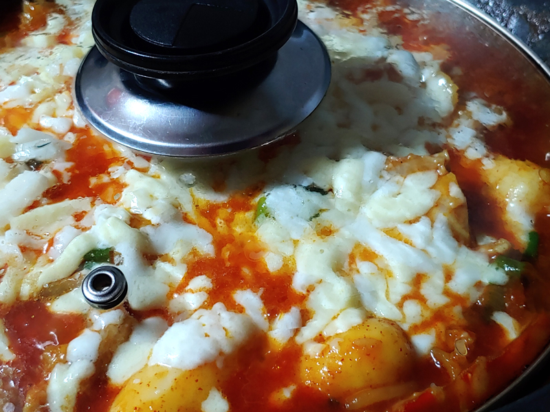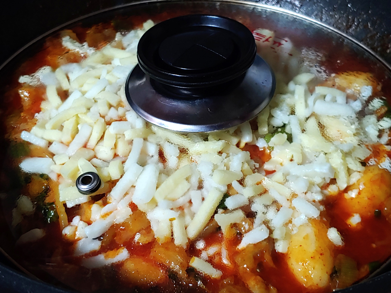 뚜껑을 덮어 치즈를 녹여줍니다.
