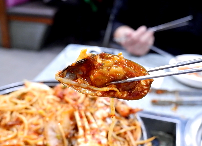 양념 듬뿍 처발린 홍합도 숨어 있습니다.