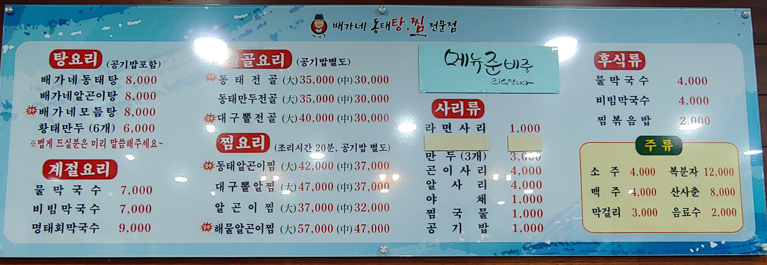 [배가네 동태탕] 찜 전문점 서울대점(02-887-7900)입니다.
