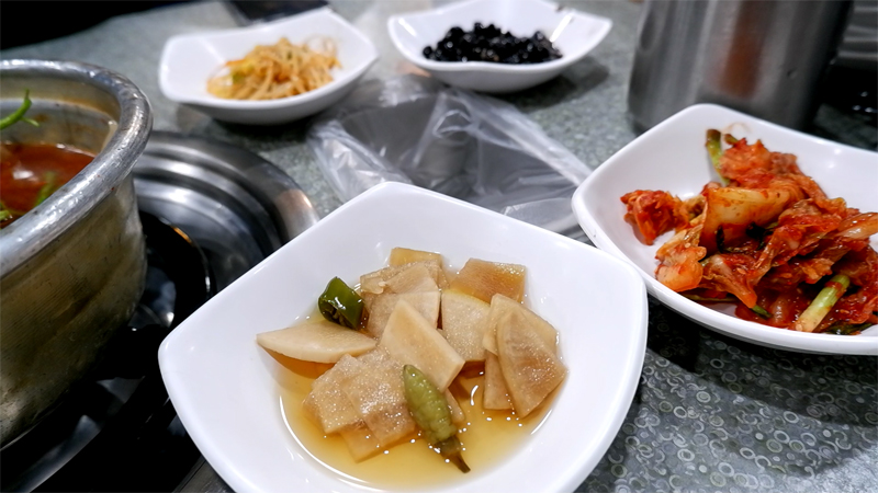 기본찬은 요 네 가지... 사실 해물찜에 칼칼한 양념에 콩나물이 듬뿍이라...