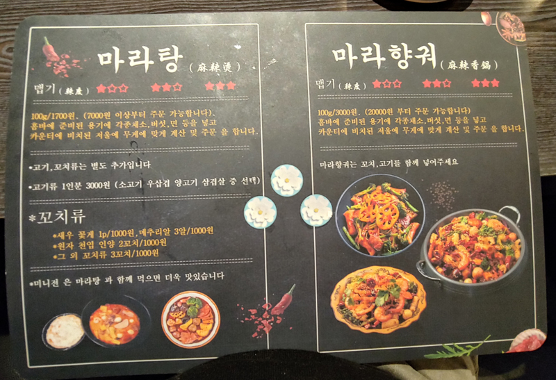 아래 메뉴판도 참고 하시구요.