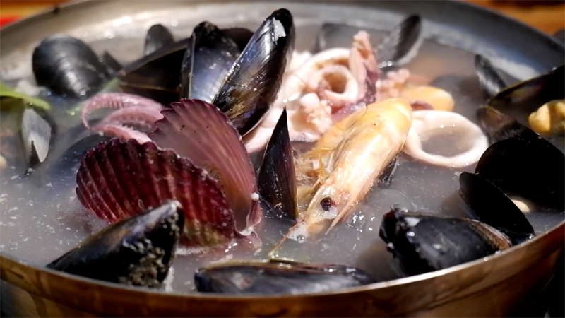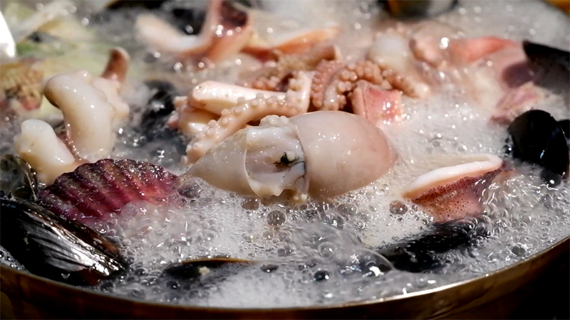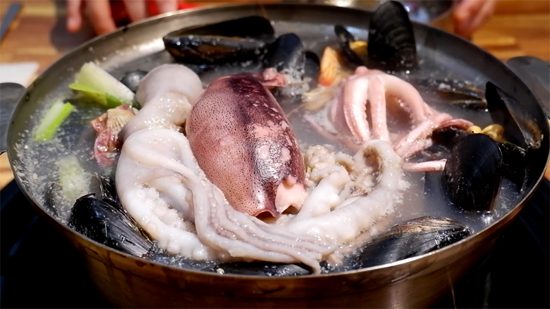 팔팔 끓으면서 해물의 진국이 국물에 우러납니다.