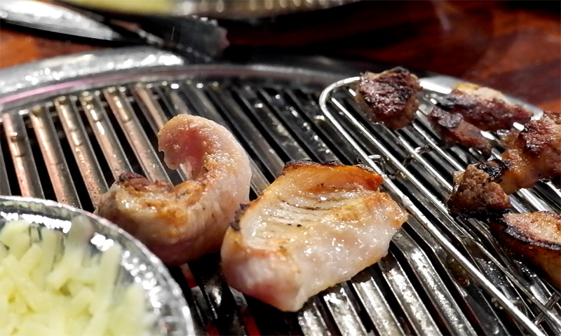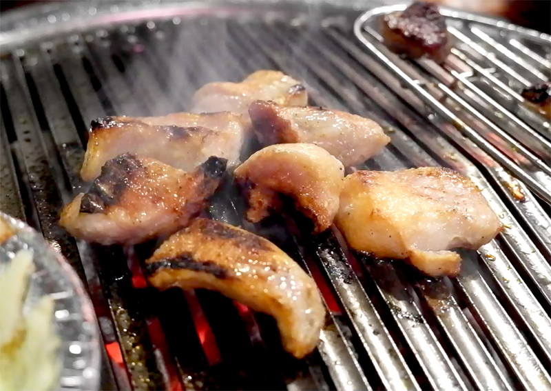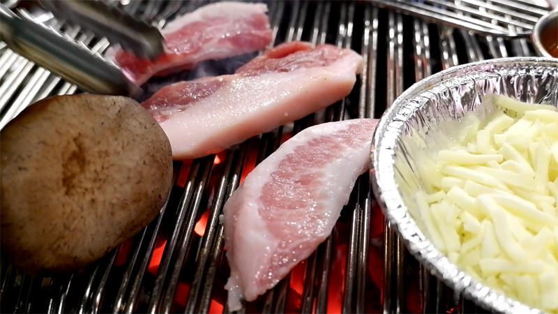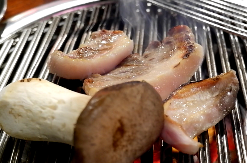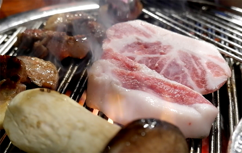 숯불향이 올라오면서 고기가 잘도 익어가는군요.