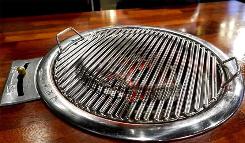 숯불에 금속 불판입니다.