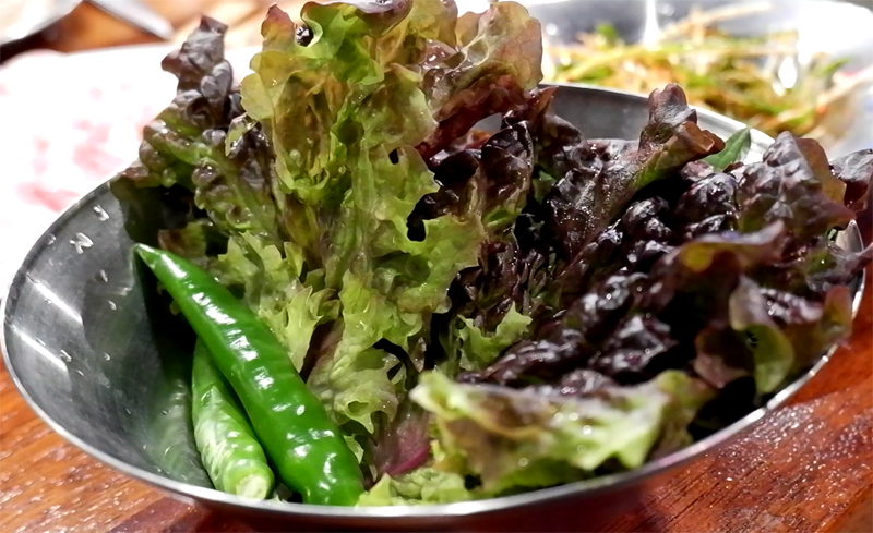 이렇게 만두처럼 고기를 싸먹는 것이죠.