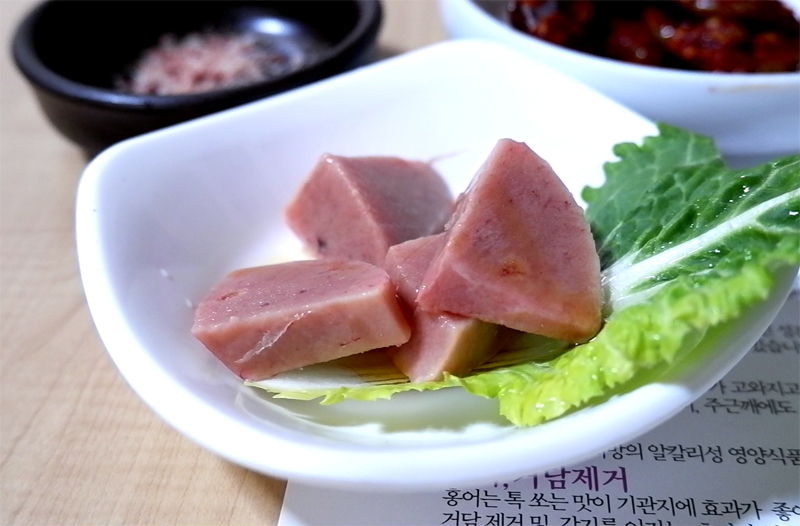 코스의 첫번째 타자는 홍어삼합.