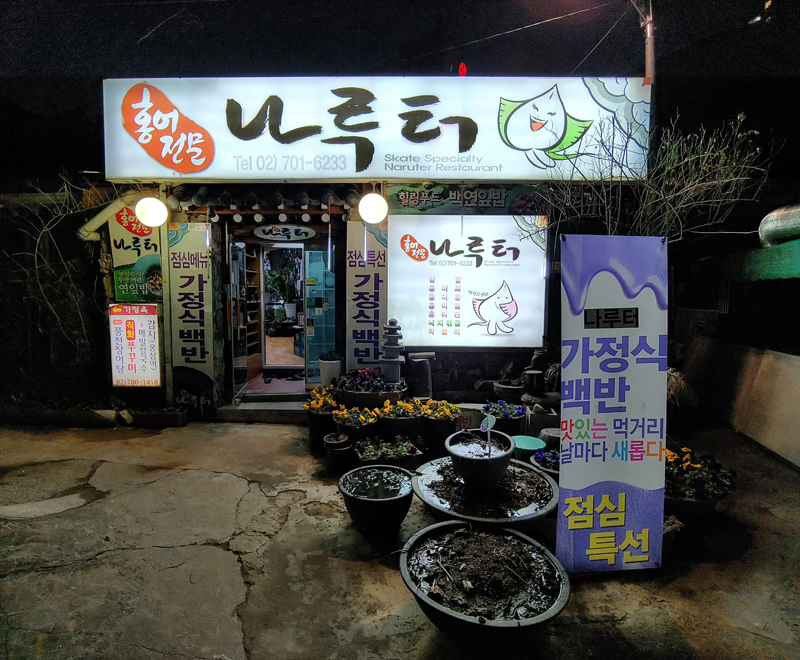 오랜 한옥을 개조한 집이라 홍어랑 잘도 어울린다.