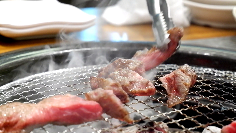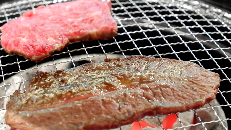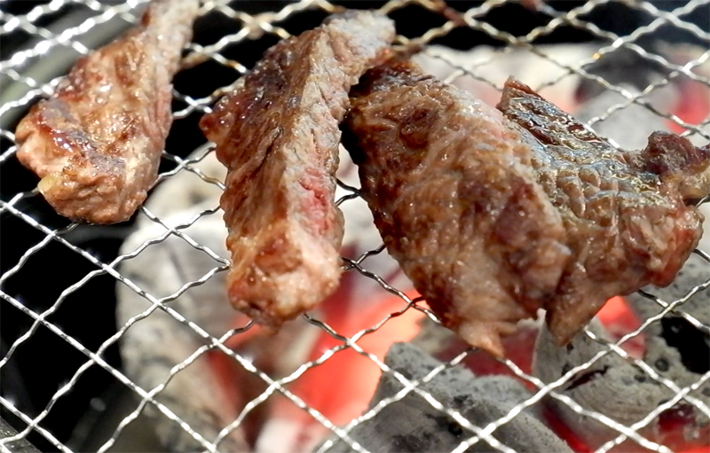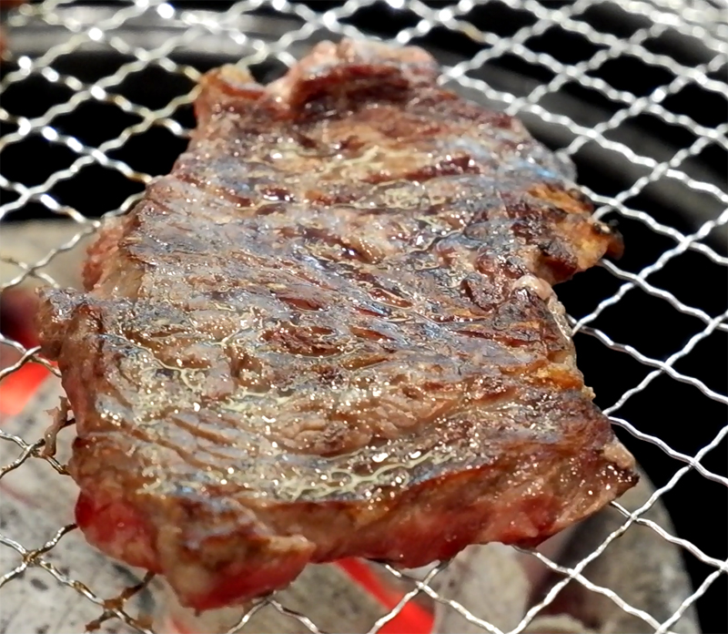 기름이 숯에 떨어지면서 연기가 피어올라 불맛이 입혀집니다.