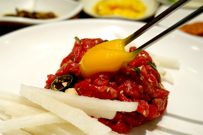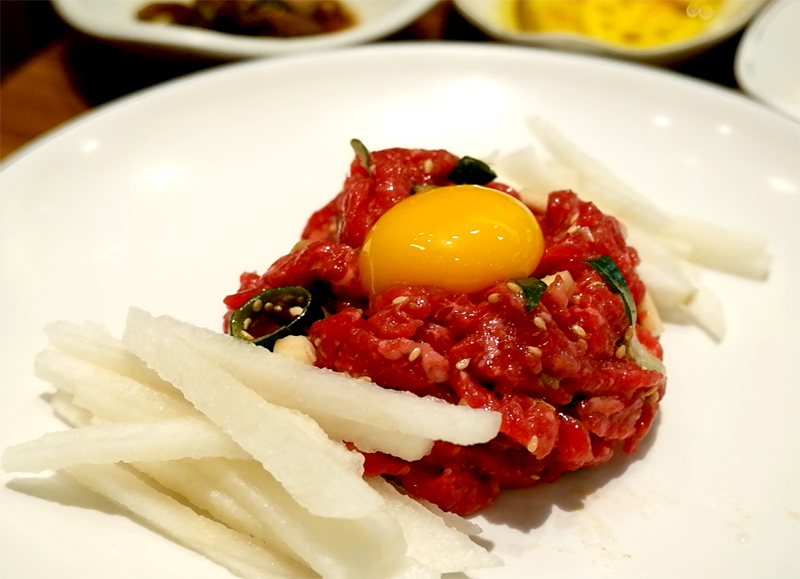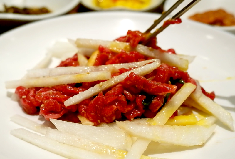 아담하고 귀엽게 생긴 육회가 나왔습니다.