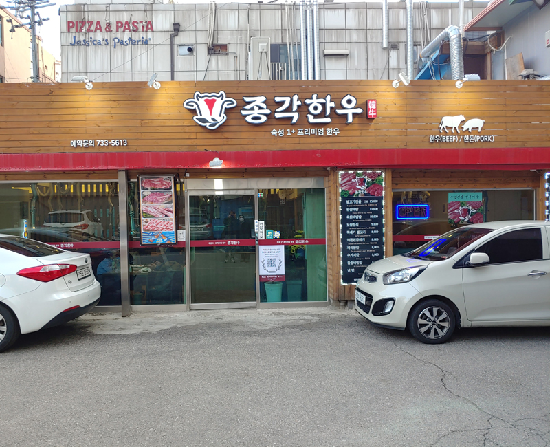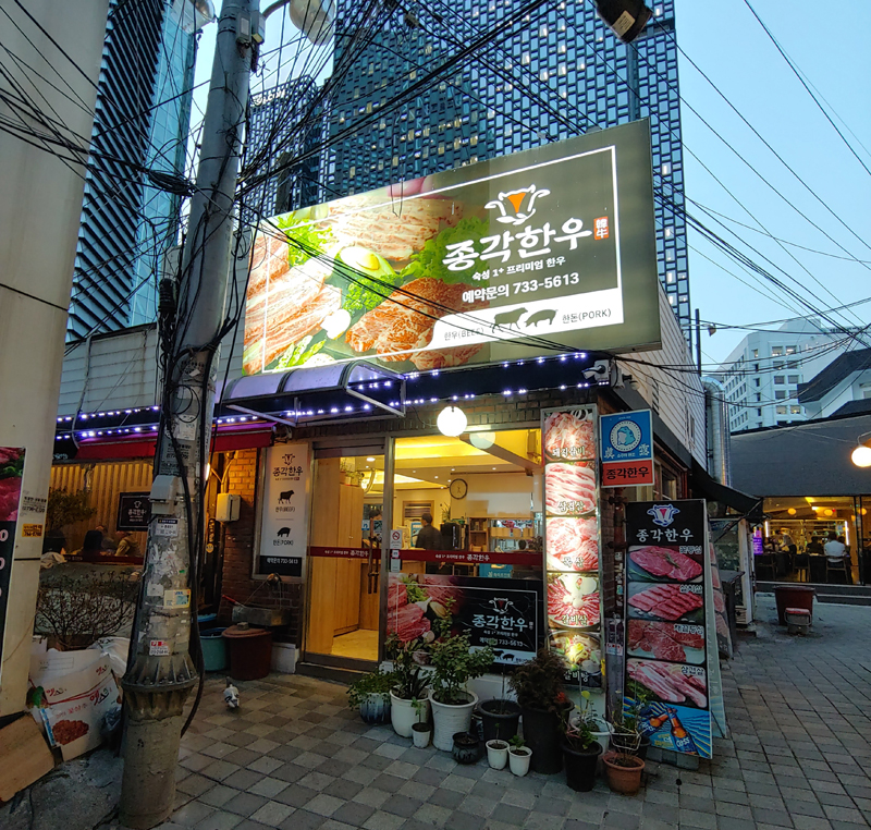 종각한우는 그런 아내와의 옛추억이 있는 종각역 부근에 있는 고기집입니다.