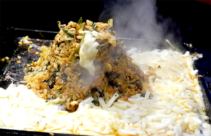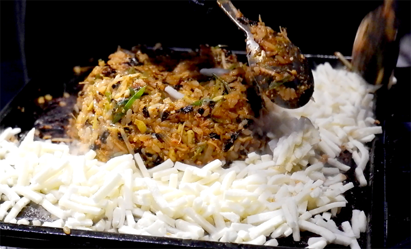 볶음밥을 시키니 모짜렐라 치즈가 한가득 나옵니다.