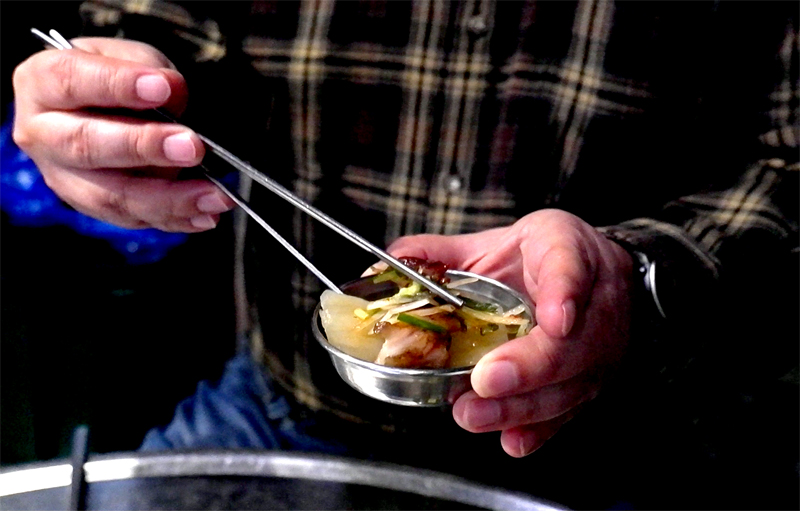 앞접시가 작은 이유는 이와 같이 들고 먹기 편하게 하기 위해 작은 그릇으로 준비를 했다고 합니다.