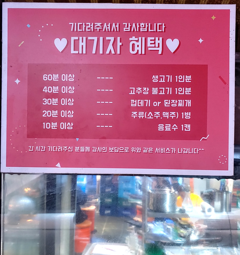 줄을 서고 있는 손님은 없지만... 사실 안에는 자리가 없었다는 것...