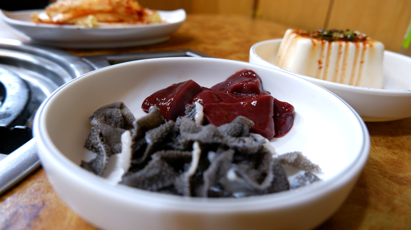 곱창집이면 나오는 간과 천엽.