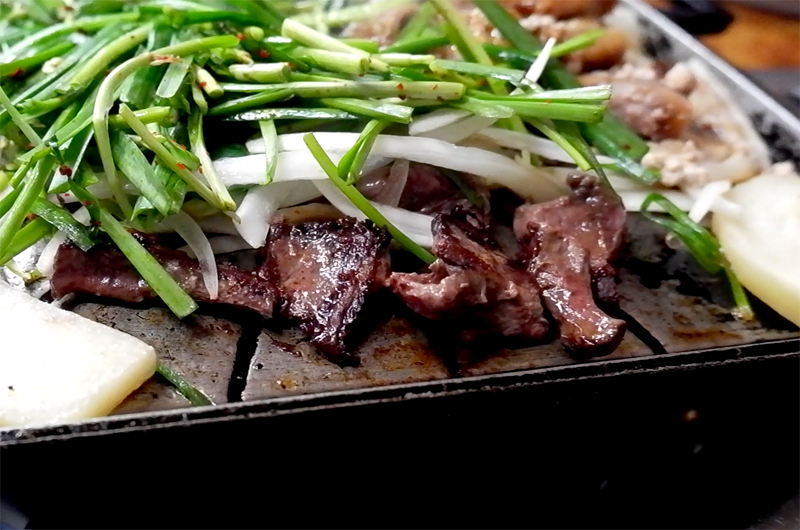 염통이 다 익었으니 시식을 한번 해볼까요?